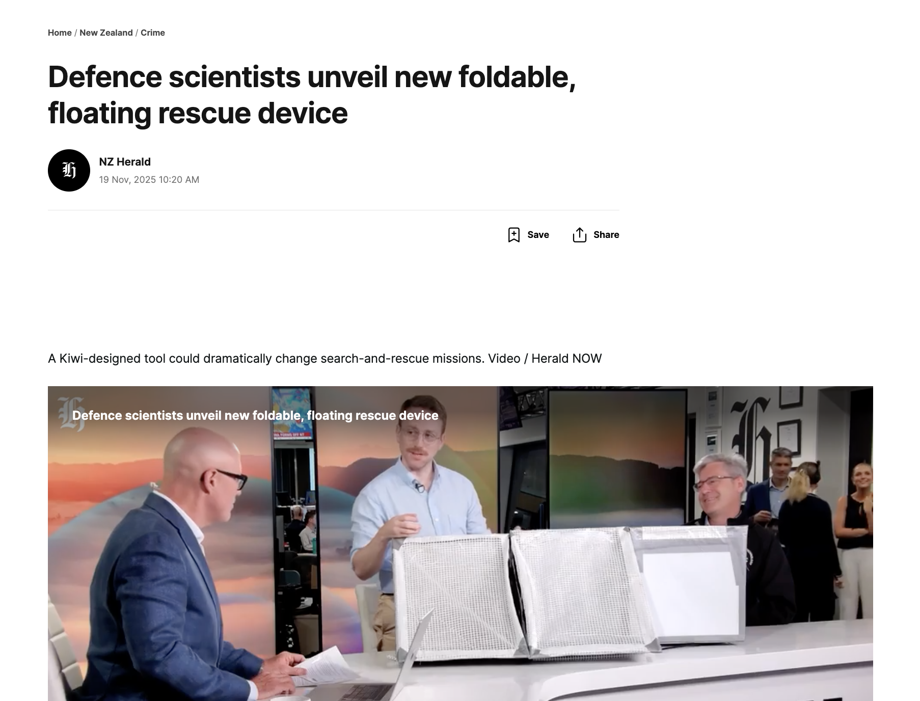 "Defence scientists unveil new foldable, floating rescue device"